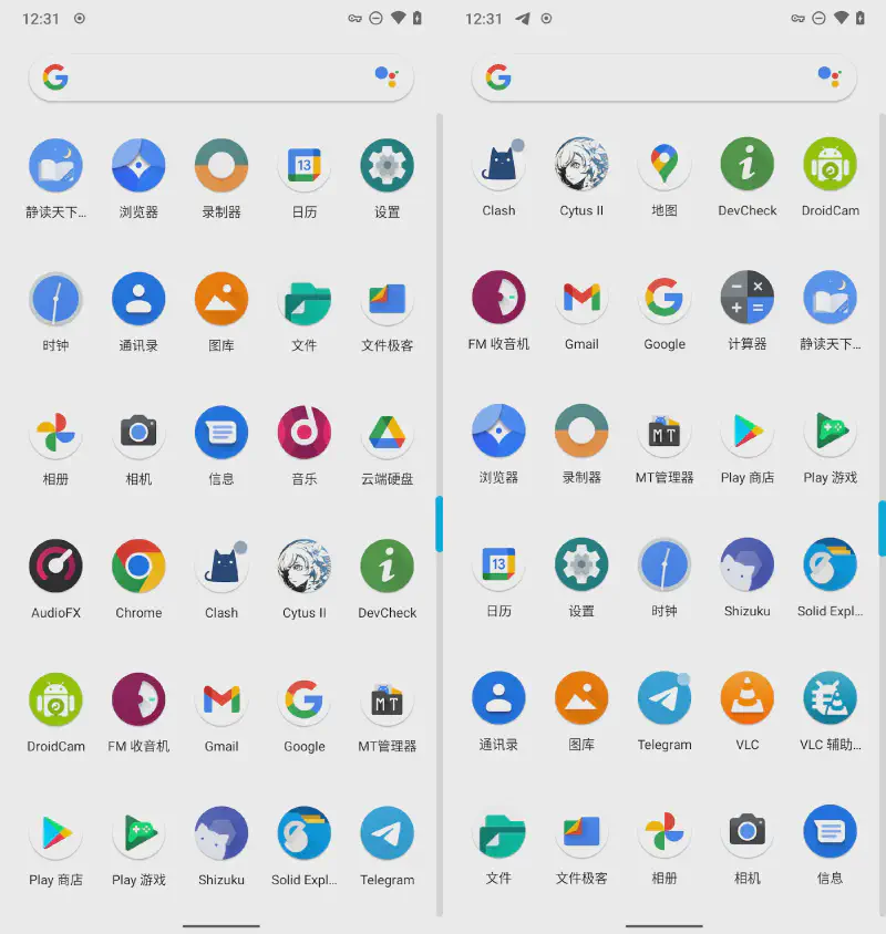 类原生自带的启动器(QuickStep、Lawnchair 等)在 简体中文(中国) 下,应用抽屉会按照中文在前,英文在后(或者反过来)的方式排序,并且缺少相关的设置项;而在 中文(中国) 下,这些启动器可以正常按照中文拼音首字母进行中英混排
